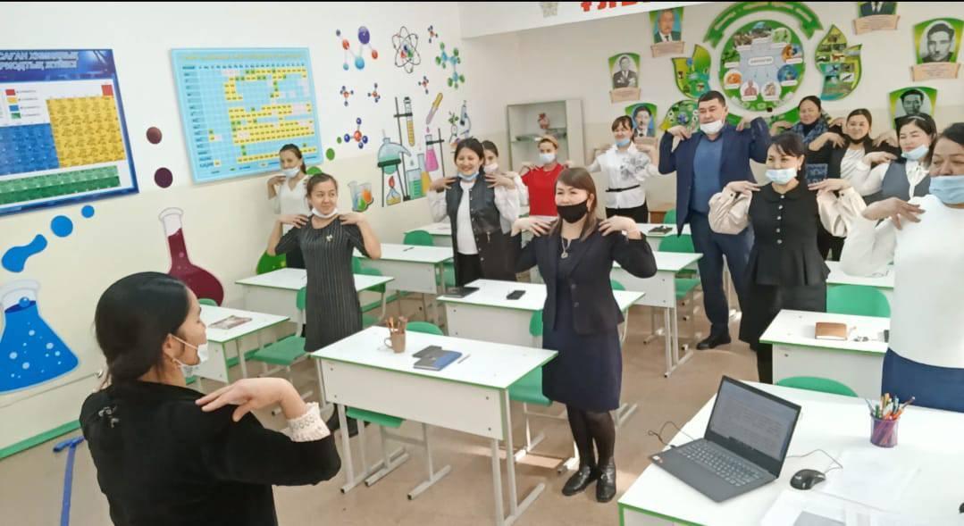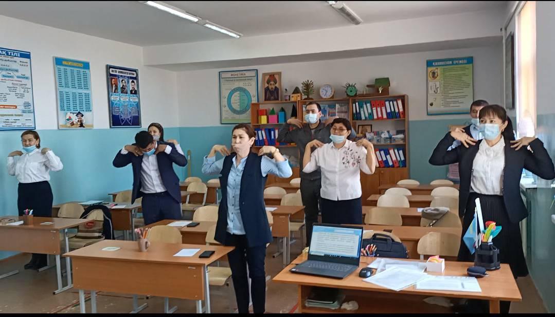 С. Мизанова, Д. Ердалиева ұжымның әлеуметтік-психологиялық жағдайын жақсарту, қарым-қатынасын дамыту, педагогтардың бойындағы жағымсыз әсерлерді күйзеліс, агрессия, мазасыздық сезімдерін болдырмау мақсатында профилактикалық жұмыстар жүргізілді.1.Диагностика "Күйзеліс деңгейін анықтау" тесті. 2.Күйзелістен арылуға арналған психологиялық жаттығулар, атап айтатын болсақ: а) "Сыйлық" жаттығу. ә) "Тау жартастары" жаттығуы. б) Сергіту сәті: Тест: «Сіздің уайымға бейімділігіңіз». 3. Жұмысты қортындылау мақсатында кері байланыс жасалынды.
