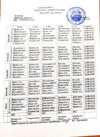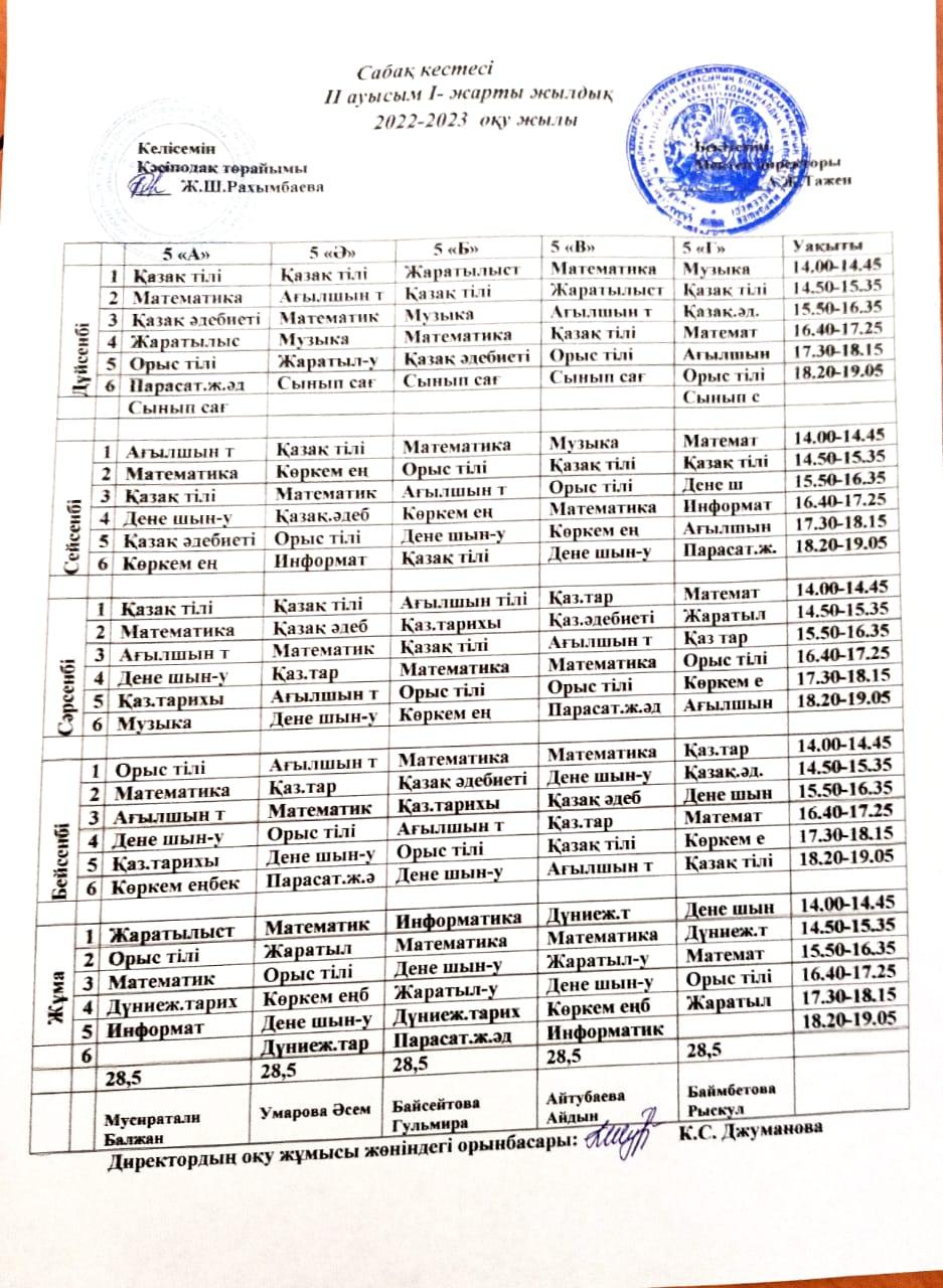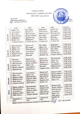 » 2022-2023 ОҚУ ЖЫЛЫНА АРНАЛҒАН ІІ АУЫСЫМ САБАҚ КЕСТЕСІ І ЖАРТЫЖЫЛДЫҚ