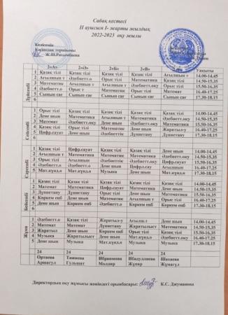 2022-2023 ОҚУ ЖЫЛЫНА АРНАЛҒАН ІІ АУЫСЫМ САБАҚ КЕСТЕСІ І ЖАРТЫЖЫЛДЫҚ