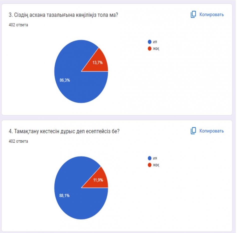 Сауалнама нәтижесі төмендегідей көрсеткішті көрсетті:
