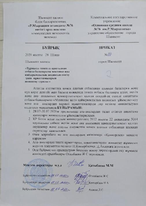 «№76 Рысбек Мырзашев атындағы негiзгi орта мектеп» КММ